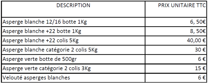 Asperges tarifs 2025